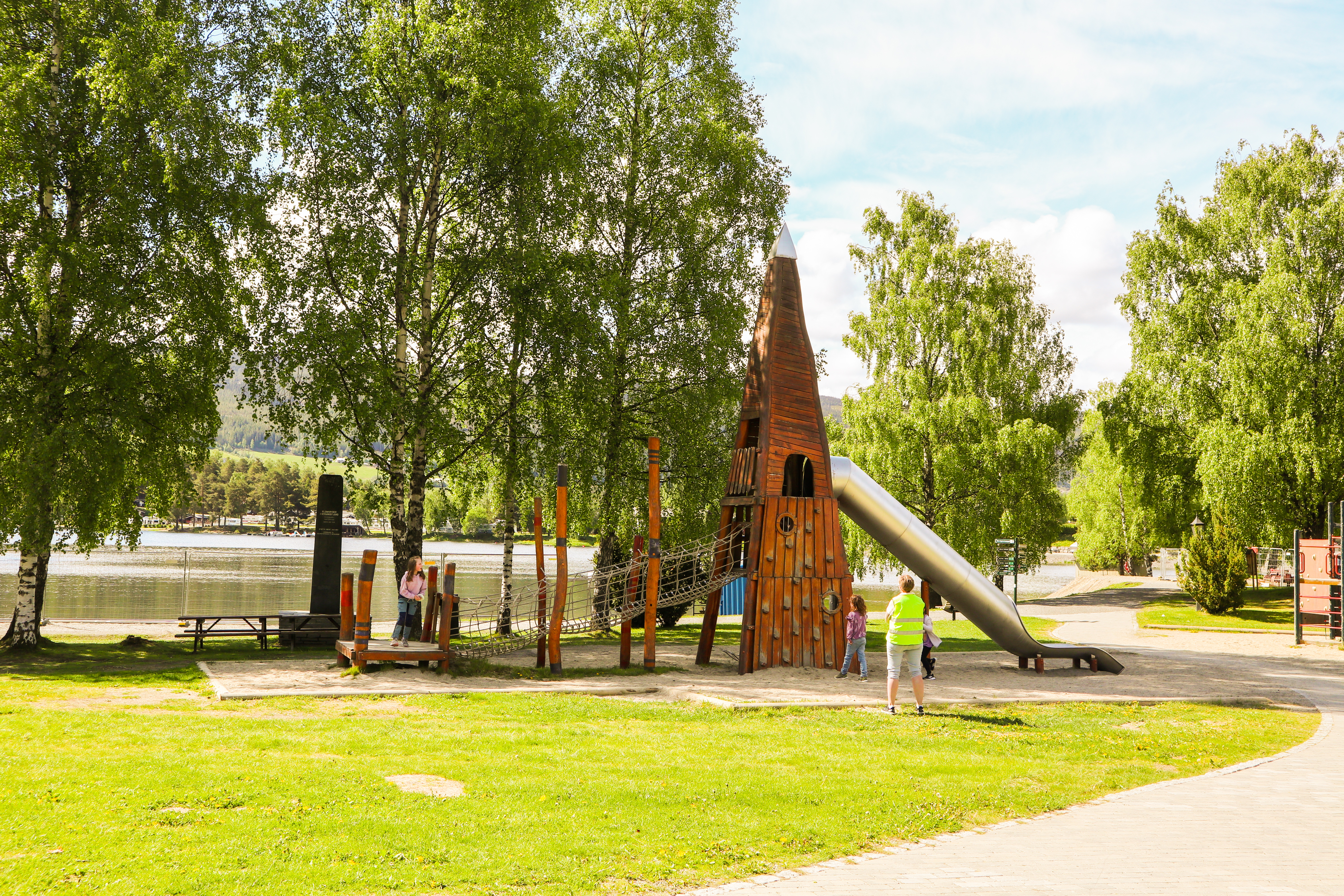 Parken i Fagernes er et perfekt sted for lek og moro, men også en avslappende dag i solen. Med tre store lekestativer, er dette et fantastisk sted for barna å løpe rundt og ha det gøy, og om været tillater det er det også bademuligheter med et deilig strandområde. Og om ballspill er det som frister mest, er det ikke noe problem å ta i bruk volleyballnettet.